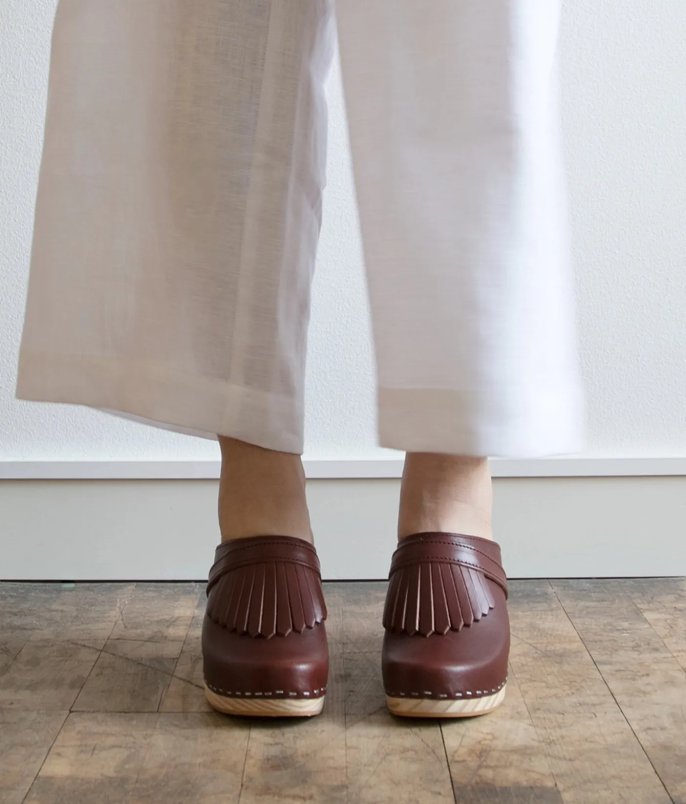 Add a touch of playful elegance with the Venice clog mules by Sandgrens. These open back and fringed clog mules boast a refreshing take on a timeless design, ideal for professional settings that demand an elevated yet fun aesthetic. With handcrafted construction and premium quality materials, the Venice are not only stylish but durable enough to withstand daily wear.